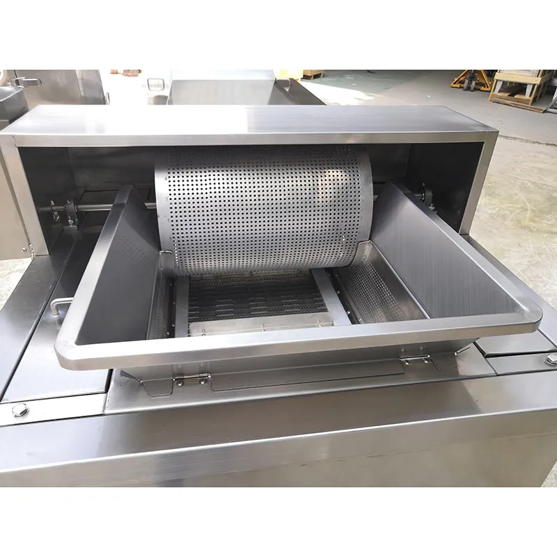 Blanching heating, temperature regulation, constant temperature system, circulating water filtration system, adjustable conveying speed, bubble agitation + whole machine chain conveying.