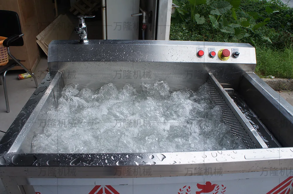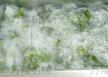 1. This machine uses high-pressure gas to generate bubbling vibration to clean fruits and vegetables. It effectively separates the mud and impurities adhering to fruits and vegetables.